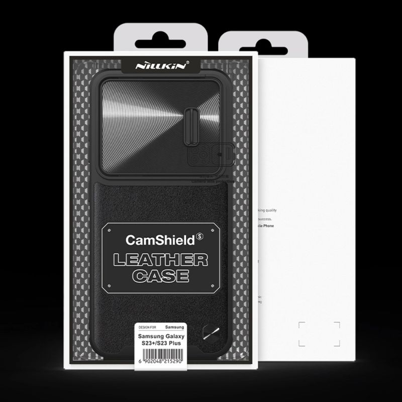 Pancerne etui Samsung Galaxy S23+ z serii Nillkin CamShield Leather S Case z osłoną na aparat w kolorze czarnym