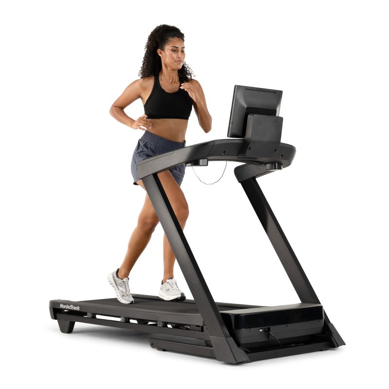 Regularność i skuteczność to klucz do osiągnięcia wyników. Ta nowoczesna bieżnia, wspierana technologią iFIT, sprawia, że osiągnięcie celów staje się łatwiejsze niż kiedykolwiek. Jeśli używasz czujnika tętna z technologią Bluetooth®, funkcja ActivePulse™ automatycznie zmieni intensywność treningu, aby utrzymać Cię w optymalnej strefie tętna. 16" WYŚWIETLACZ: Podczas każdego treningu możesz na bieżąco śledzić swoje statystyki dzięki czytelnemu 7 calowemu wyświetlaczowi. Ekran pokazuje kluczowe dane, takie jak czas, prędkość, dystans, spalone kalorie czy tętno, umożliwiając pełną kontrolę nad postępami i skutecznością ćwiczeń. NordicTrack T8 oferuje pełną kompatybilność z aplikacją iFIT.