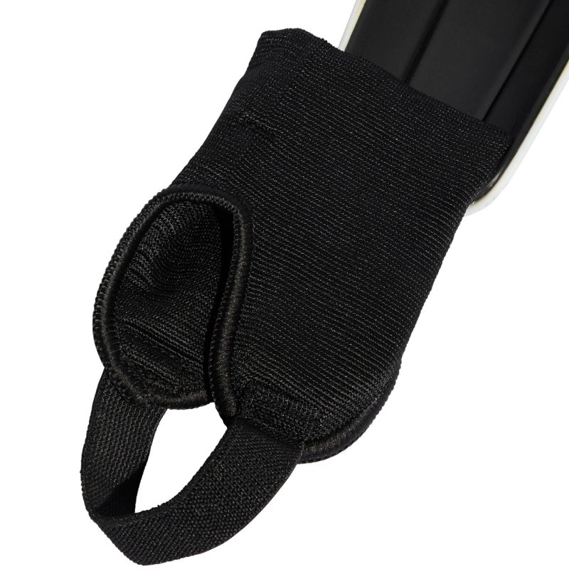 - Pojedyncze paski stabilizują nagolenniki, a elastyczna forma na rzep niweluje ryzyko otarć i podrażnień.