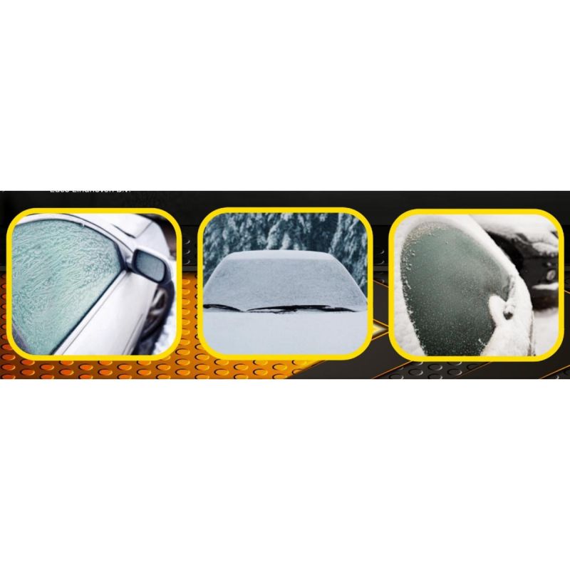 Specjalna formuła tworzy warstwę ochronną, która zapobiega ponownemu osadzaniu się lodu na powierzchni szyby.