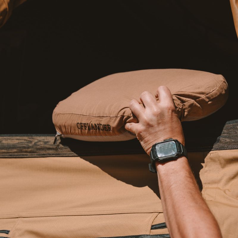 Poduszka OFFLANDER została wykonana z wytrzymałego materiału z miękkim wykończeniem, przyjemnym dla skóry. Ergonomiczny kształt dopasowuje się do głowy i szyi, zapewniając wygodne wsparcie niezależnie od pozycji. Po użyciu wystarczy zwinąć i wsadzić do kompaktowego pokrowca. Dzięki temu zajmuje bardzo mało miejsca i można ją zabrać niemal wszędzie!
