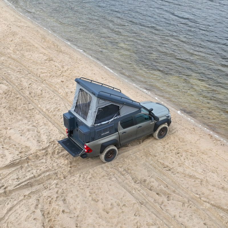 Aby cieszyć się niezależnością w podróży, nie musisz rezygnować z komfortu. Wahiba od OFFLANDER to kompaktowa i funkcjonalna zabudowa kamperowa, którą bez problemu zamontujesz na swoim pick upie bez konieczności demontażu klapy. To rozwiązanie dla tych, którzy cenią swobodę i elastyczność w podróży. Wahiba to nie tylko schronienie, ale pełnoprawna przestrzeń mieszkalna na wyprawy w każdych warunkach. Wbudowane ogrzewanie Webasto zapewni ciepło nawet w chłodniejsze dni, a praktyczne schowki i bakisty pomieszczą cały niezbędny ekwipunek. W środku znajdziesz wygodną przestrzeń do spania, ergonomiczne rozwiązania oraz nowoczesne systemy oświetlenia i zasilania.