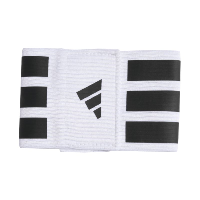 Opaska kapitana adidas Tiro L AB biało-czarna KD4248 Opaska kapanina adidas pozwoli pokreślić kto przewodzi swojej drużynie. Paski, logo i litera C. Zapięcie na rzep. Dodatkowa, elastyczna pętelka. Ten model jest wykonany z serii materiałów pochodzących z recyklingu. Materiał: 82% poliester pochodzący z recyklingu, 18% elastan