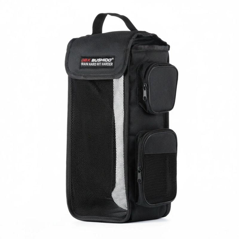 Organizer DBX Bushido został zaprojektowany do wygodnego przechowywania i przenoszenia rękawic bokserskich po treningu. Przewiewna konstrukcja z siatki pozwala na swobodny przepływ powietrza, dzięki czemu rękawice szybciej wysychają i dłużej utrzymują świeżość.