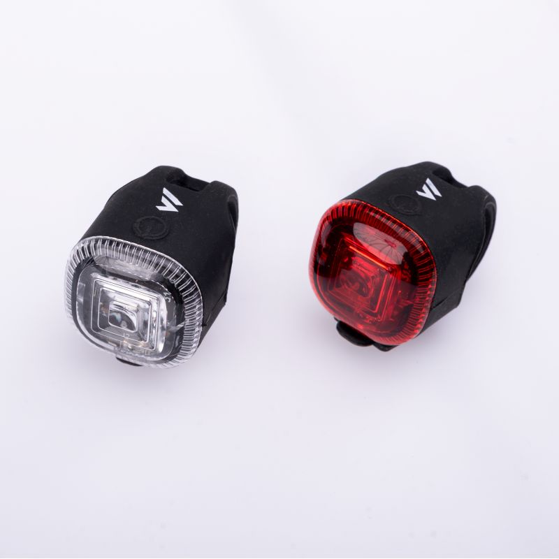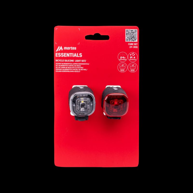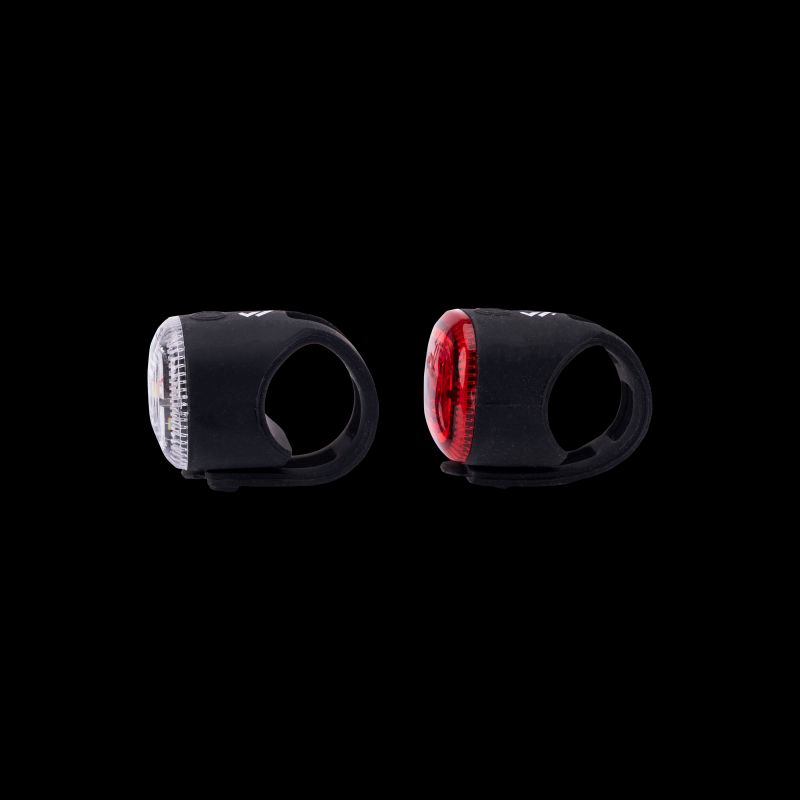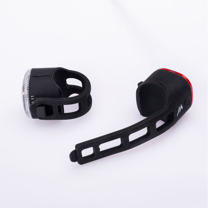 OŚWIETLENIE ROWEROWE SKŁAD MATERIAŁOWY: ABS/PMMA/SILIKON SPECYFIKACJA: LUMENY: 15/6 LM BIAŁY LED CZERWONY LED 2 TRYBY ŚWIECENIA WODOODPORNOŚĆ: IPX3
