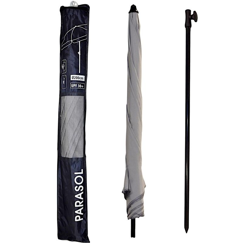 PARASOL OGRODOWY 185CM SZARY zapewnia doskonałą osłonę przed promieniami UV, chroniąc skórę przed szkodliwym działaniem słońca. To idealne rozwiązanie na ciepłe, słoneczne dni, umożliwiające komfortowy wypoczynek na świeżym powietrzu.