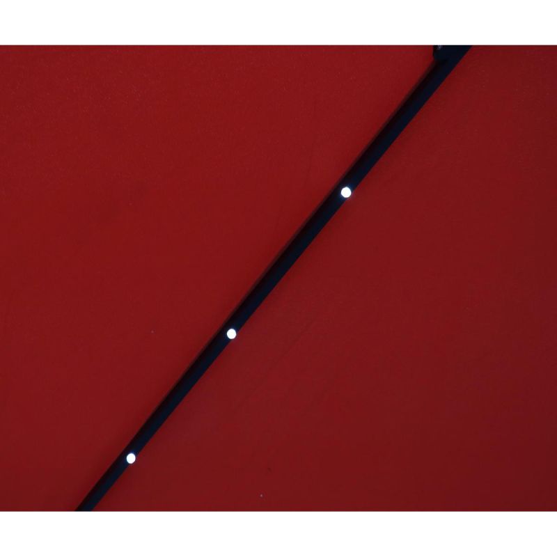 Wbudowane oświetlenie LED sprawia, że parasol może być używany również wieczorem. Daje to możliwość korzystania z ogrodu po zmroku, tworząc przyjemną, romantyczną atmosferę. Diody LED zasilane są panelem słonecznym umieszczonym na górze parasola, należy jednak pamiętać, że lampki będą prawidłowo działać tylko po naładowaniu akumulatorka w słoneczny dzień.