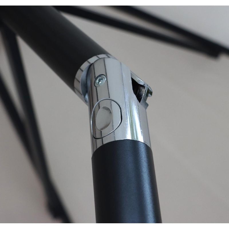 Parasol oprócz korbki za pomocą której otwierasz czaszę, posiada system regulacji konta nachylenia. Taka regulacja umożliwia dostosowanie obszaru zacienienia w trakcie dnia i pozwala na utrzymanie komfortowej temperatury nawet w gorące dni.