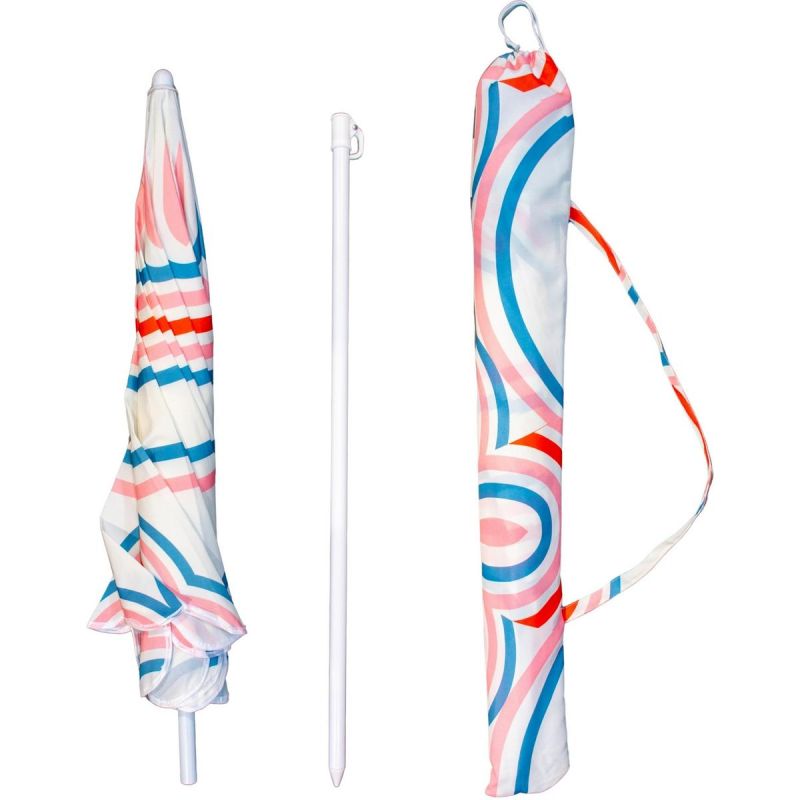 Poznaj PARASOL PLAŻOWO OGRODOWY 160CM PASEK NIEBIESKO RÓŻOWY z trwałego materiału i wakacyjnych kolorach.