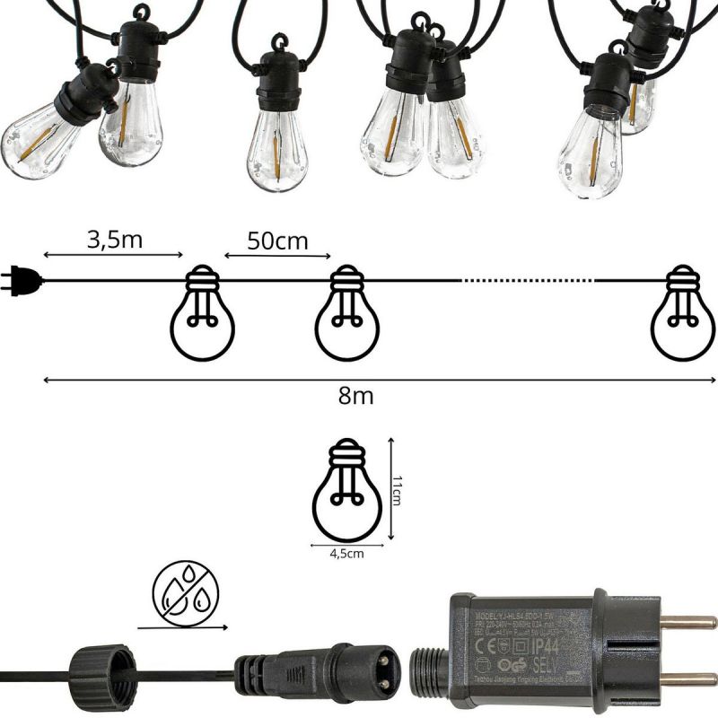- Długość przewodu z żarówkami: 8m