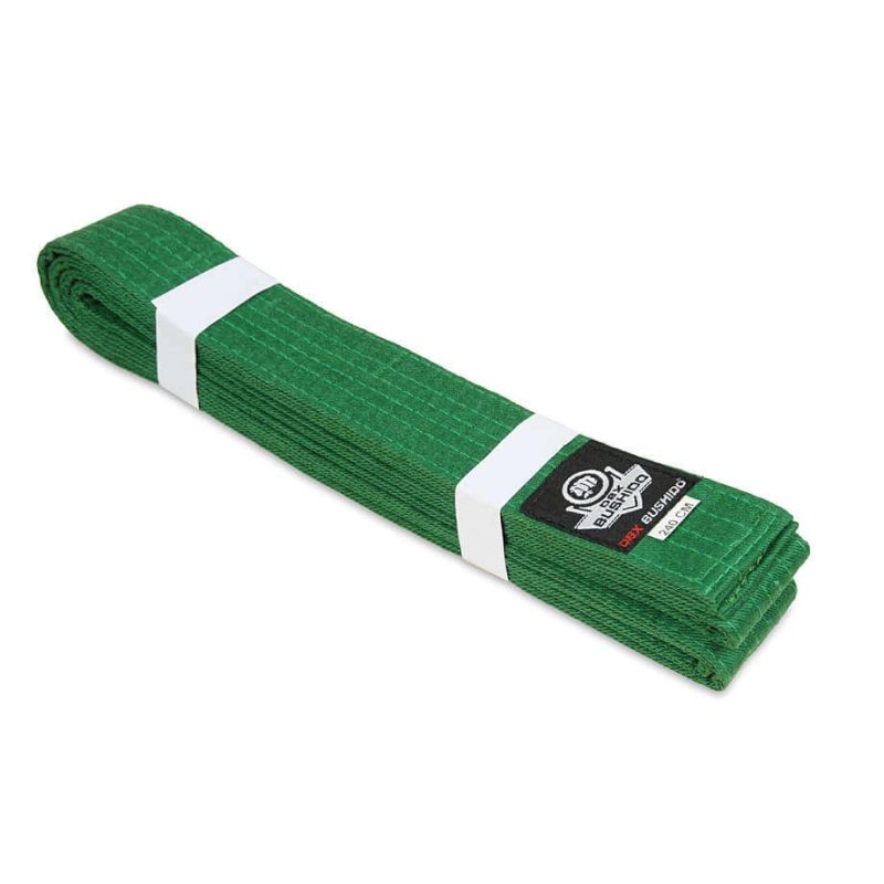 Zielony pas do kimon stosowanych w sportach walki wykonany z materiału stanowiącego mieszkankę poliestru i bawełny zapewniającą odporność na przetarcia i rozerwania.