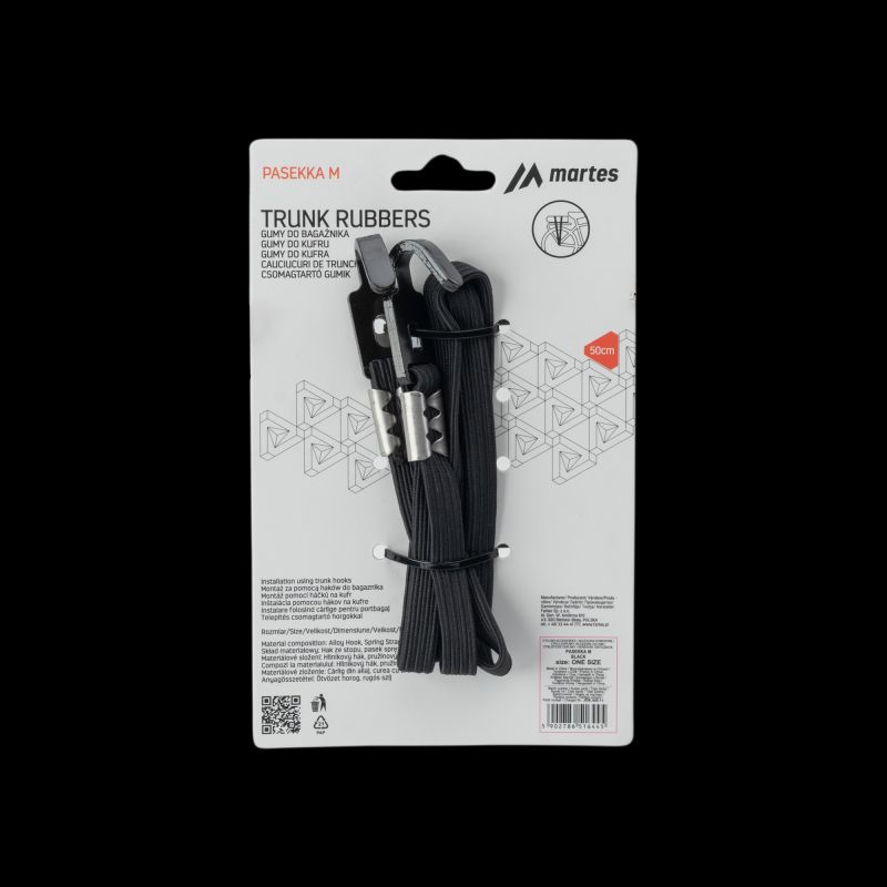 GUMY DO BAGAŻNIKA ROZMIAR: 50 cm WAGA: 54 g SKŁAD MATERIAŁOWY: PASEK: POLIESTER SPRZĄCZKA: STOP METALI