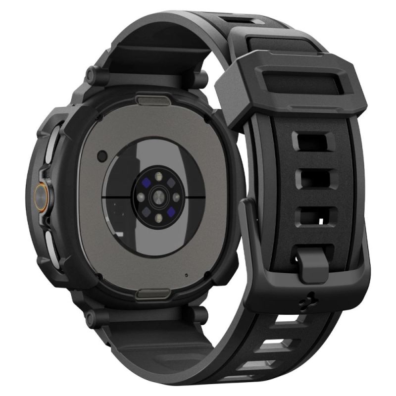 Spigen Rugged Armor Pro to stylowy, sportowy pasek z wbudowaną ochronną obudową, zaprojektowany z myślą o maksymalnym bezpieczeństwie i komforcie użytkowania. Wykonany z elastycznego i wytrzymałego tworzywa TPU, zdobionego charakterystycznymi akcentami z włókna węglowego, doskonale łączy nowoczesny wygląd z funkcjonalnością.