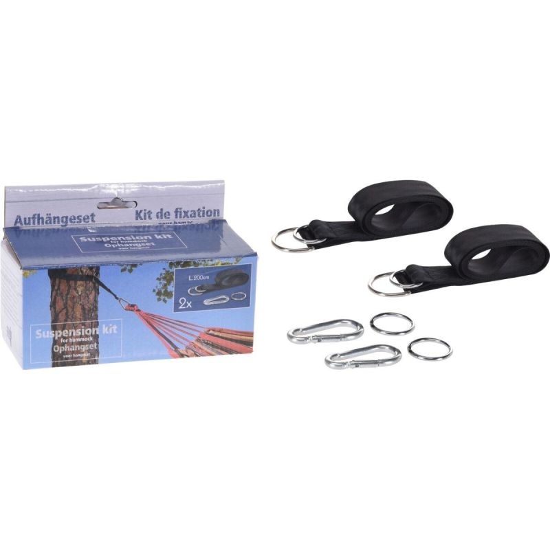 Dwa mocne karabińczyki gwarantują stabilne mocowanie i bezpieczeństwo użytkowania, zapobiegając przypadkowemu zsunięciu się hamaka lub huśtawki.