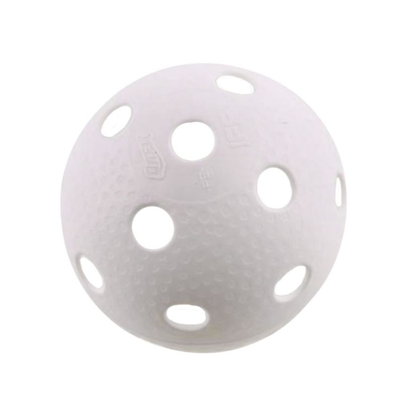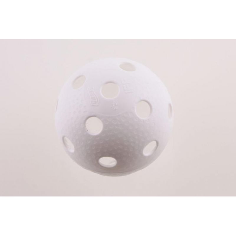 Biała piłeczka do unihokeja posiada atest IFF.