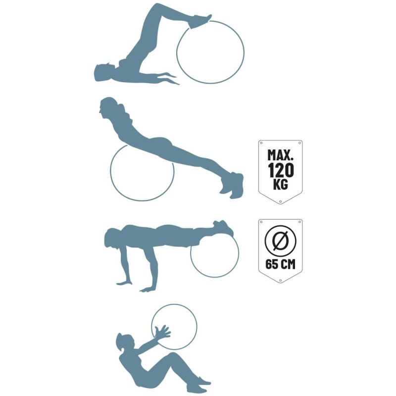 - średnica piłki 55-65 cm odpowiednia dla osób o wzroście 150-165 cm