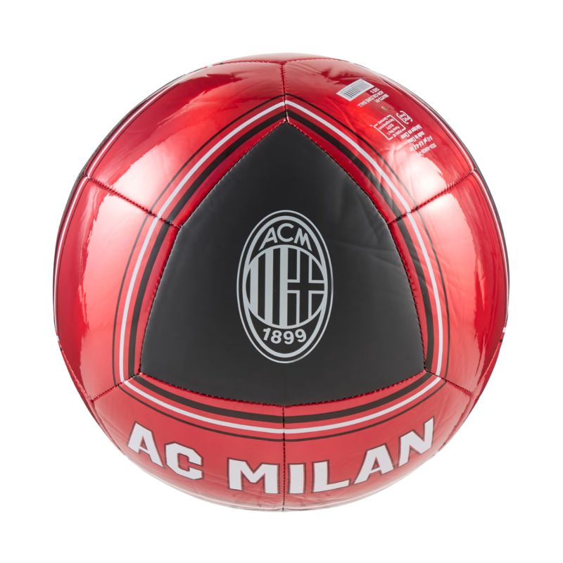 Piłka nożna Puma AC Milan Culture czerwono-czarna 84972 01 Wypracuj własny styl na boisku, trenując piłką Puma. Jest odpowiednia zarówno na drużynowe treningi, i jak i do rekreacyjnej gry na naturalnej nawierzchni. Szyta maszynowo konstrukcja z 32 paneli. Błyszcząca powłoka zewnętrzną z TPU. Wewnętrzna gumowa dętka. Logo brandu. Oficjalne logo klubu AC Milan. Oficjalne barwy klubowe.