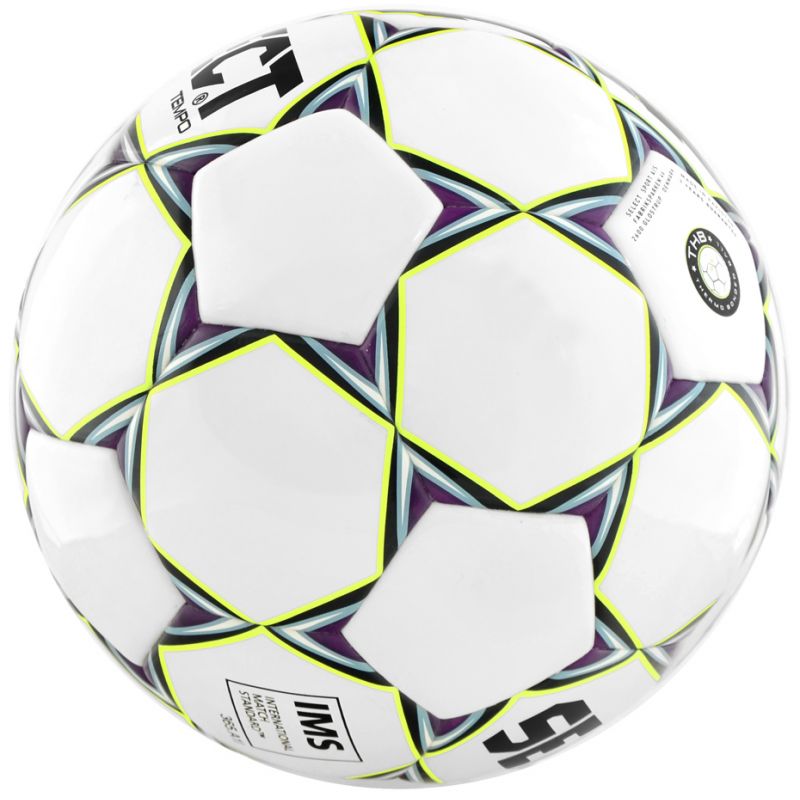 PIŁKA NOŻNA SELECT TEMPO IMS roz 5 /11241 Piłka nożna, wykonana z wysokiej jakości poliuretanowego materiału o mocnej strukturze. Specjalnie zaprojektowane podszycie oraz opatentowany pęcherz Zero-WIng sprawiają, że piłka odbija się lepiej i żwawiej.Konstrukcja oparta na 32 wiązanych termicznie panelach gwarantujących minimalne nasiąkanie wodą i stabilny lot.Polecana podczas meczy i treningów klubowych. Rozmiar: 5