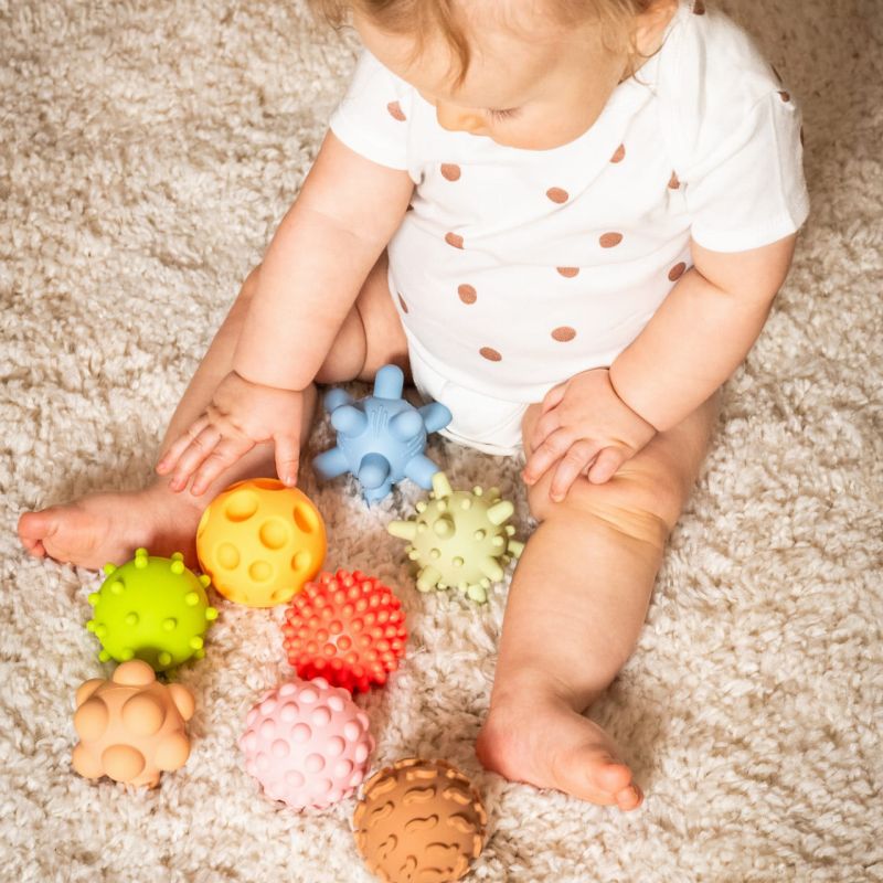 Piłki sensoryczne bez dziurki 8 szt. Tullo pastelowe REF803 Zestaw piłeczek sensorycznych Tullo oddziałuje na różne zmysły dziecka pomagając w lepszym rozwoju. Dlaczego warto wybrać Sensorki Tullo®?· Stymulacja sensoryczna - różnorodne struktury i kształty aktywizują receptory czuciowe, wspierając dzieci z zaburzeniami integracji sensorycznej.· Trening równowagi i propriocepcji - toczenie, ściskanie i manipulowanie piłkami wspomaga rozwój świadomości własnego ciała w przestrzeni.· Wsparcie ćwiczeń stóp - delikatny masaż piłeczkami pobudza krążenie i wzmacnia mięśnie, wspomagając profilaktykę płaskostopia oraz rozwój łuku podłużnego.· Rozluźnienie napięcia mięśniowego - masaż przynosi ulgę przy wzmożonym lub obniżonym napięciu mięśniowym, poprawia komfort i wspomaga relaksację.· Usprawnienie motoryki małej - rozwija precyzyjne ruchy dłoni i palców, zwiększa sprawność manualną i koordynację wzrokowo-ruchową.· Pomoc w terapii i rehabilitacji - doskonałe wsparcie w ćwiczeniach terapeutycznych, zarówno w domu, jak i w gabinecie fizjoterapeutycznym. Dane techniczne: · Zestaw zawiera: 8 piłek· Grupa wiekowa: 0+· Rozmiar piłek: od 59 do 77 mm· Posiada oznaczenie CE (zgodność z normami UE)· To jest wyrób medyczny. Używaj go zgodnie z instrukcją używania lub etykietą· Piłeczki nie posiadają otworów, dzięki czemu są higieniczne, bezpieczne i idealne do użycia podczas kąpieli. Woda i ślina nie przedostają się do środka, a Twój maluch ma kontakt tylko z czystą, zewnętrzną powierzchnią· W 100% wykonane w Polsce z atestowanych surowców· Nie zawierają ftalanów, BPA ani metali ciężkich· Sposób czyszczenia: Myć w ciepłej wodzie z użyciem mydła dla dzieci. Nie parzyć wrzątkiem ani nie wkładać do sterylizatora