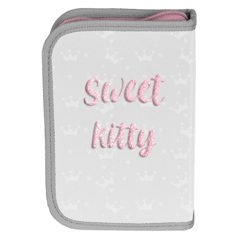 Piórnikszkolny PASO Sweet Kitty szaryz wyposażeniem do szkoły