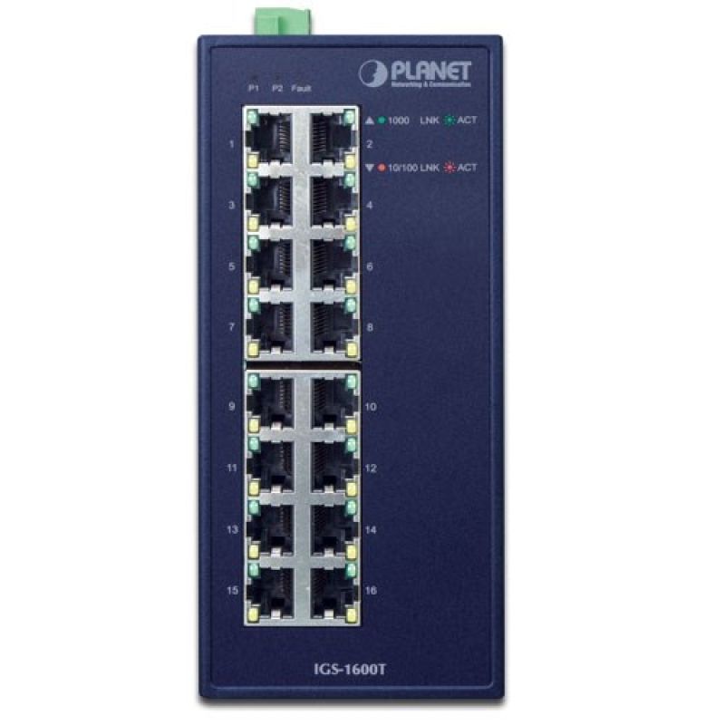 PLANET IGS-1600T łącza sieciowe Nie zarządzany L2 Gigabit Ethernet (10/100/1000) Niebieski
