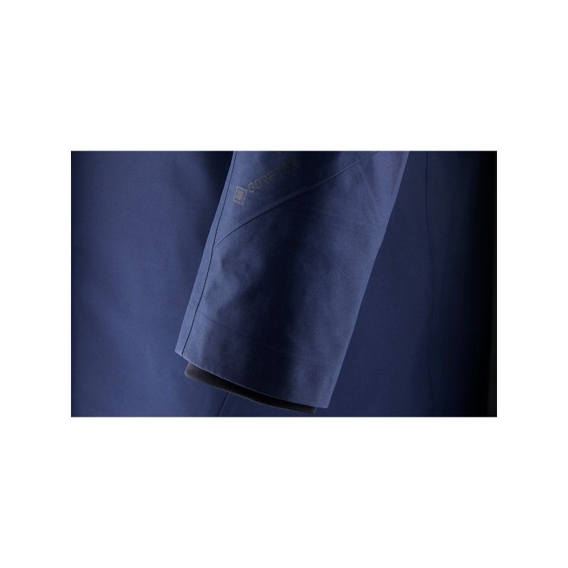 Płaszcz Race Gore Tex Coat, dzięki 3-warstwowej tkaninie GORE-TEX® z jakiej jest wykonany, zapewnia 100% ochronę przed wodą i deszczem. Jego wodoodporność została dodatkowo wzmocniona przez pokrycie zewnętrznej warstwy impregnacją Double Water Repellent. Płaszcz powstał w 100% z poliestru pochodzącego z recyklingu. Posiada niezwykle komfortowy fason, wyposażony w liczne, funkcjonalne kieszenie, wodoodporne suwaki, a także kaptur z łatwym systemem regulacji. Z pewnością sprawdzi się nawet podczas ciężkich warunków pogodowych i nie zawiedzie najbardziej wymagających użytkowników!