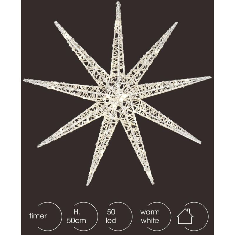 50 DIOD LED zapewnia równomierne, delikatne oświetlenie, które tworzy przyjemną, przytulną atmosferę w pomieszczeniu. LED-y rozmieszczone na całym płatku śniegu tworzą efekt blasku przypominający prawdziwy śnieg połyskujący w świetle księżyca. Oświetlenie przyciąga wzrok i nadaje magicznego charakteru każdemu zakątkowi domu.