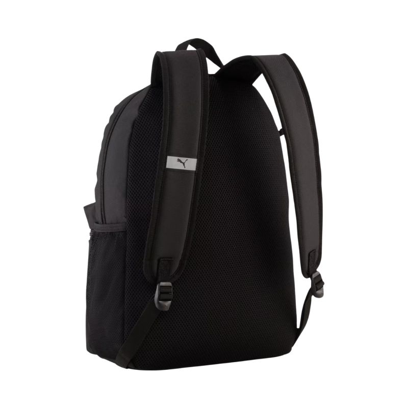 Plecak Puma Phase czarny 92190 02 Jednokomorowy plecak Puma pomieści podręczny ekwipunek do szkoły i na krótką, weekendową wycieczkę. Dostęp do głównej komory jest szybki i sprawny za sprawą dwukierunkowego zamka błyskawicznego. Duża, zamykana kieszeń na froncie. Regulowane, miękko wypełnione szelki z odblaskiem. Wyściełana, tylna wstawka. Pleciony uchwyt do noszenia w dłoni. Siateczkowa kieszonka z boku. Do kompletu dołączono zapinany piórnik. Dane techniczne:· W zestawie: plecak + piórnik· Materiał: 100% poliester· Wymiary plecaka: 43,5 x 13 x 14 cm· Pojemność plecaka: 20 l· Produkt wykonany w co najmniej 90% z materiałów pochodzących z recyklingu
