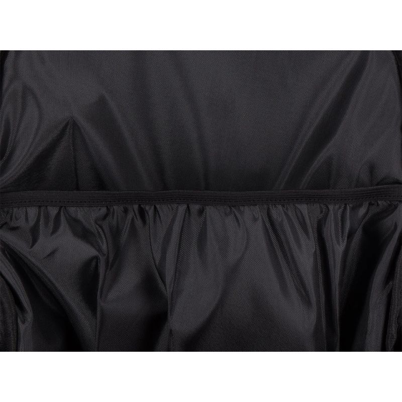 Plecak został wykonany z materiału syntetycznego o gładkiej powierzchni, który cechuje się trwałością i łatwą pielęgnacją. Zewnętrzna warstwa została zabezpieczona hydrofobową impregnacją, która spowalnia wchłanianie wilgoci – woda skrapla się na powierzchni materiału i swobodnie po niej spływa, chroniąc zawartość plecaka przed deszczem.