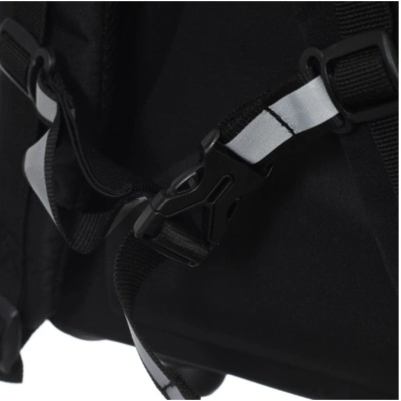 - Tornister z usztywnieniem, ma obszerną główną komorę zapinaną na zamek, a także mniejszą przednią kieszeń termiczną idealną na pudełko z drugim śniadaniem i boczną kieszeń na butelkę z wodą. Wewnątrz znajduje się dodatkowa przegroda z elastycznym paskiem przeznaczonym na ciężkie przedmioty, utrzymująca je jak najbliżej pleców w celu optymalnego rozłożenia ciężaru.