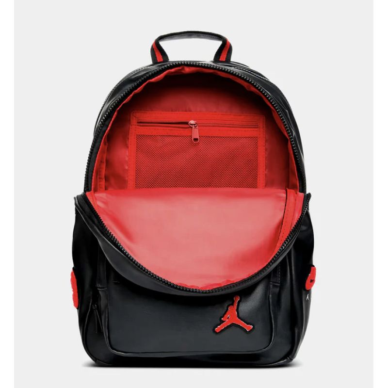 Wykonany z groszkowanej sztucznej skóry, w stylu inspirowanym kurtką uniwersytecką Jordana ozdobiony haftowanym logo, ten podwyższony plecak to doskonały sposób na noszenie codziennych rzeczy. Pojemna komora główna zapinana jest na zamek błyskawiczny, a w środku znajduje się siateczkowa kieszeń zapinana na zamek, która pomoże Ci zabezpieczyć drobiazgi. Tylna komora mieści wyściełaną przegrodę na laptopa lub tablet, a kieszenie zapinane na zamek z przodu zapewniają szybki i łatwy dostęp. Boczne kieszonki na butelkę.