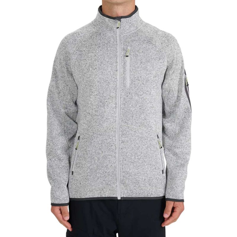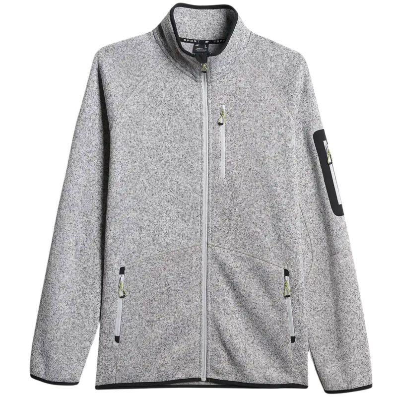 Polar męski 4F M443 chłodny jasny szary melanż 4FWSS26TFLEM443 27M Polar męski 4F o strukturze imitującej sweter sprawdzi się zarówno na co dzień, jak i podczas aktywności na świeżym powietrzu. Dane techniczne:· Materiał główny: 100% poliester· Materiał dodatkowy: 100% poliester,· Materiał dodatkowy 2: 92% poliester, 8% elastan· Materiał dodatkowy 3: 100% poliester· Regularny krój wygodnie dopasowuje się do sylwetki· Średnia gramatura 280· Standardowy fason sięgający do bioder· Wykonany z polaru o strukturze imitującej sweter · Stójka osłania szyję· Raglanowe rękawy· Mankiety i dół wykończone elastyczną lamówką· 2 kieszenie boczne zapinane na zamek· Kieszeń na ramieniu zapinana na zamek· Kieszeń na piersi zapinana na zamek· Zapinany na jednokierunkowy zamek główny