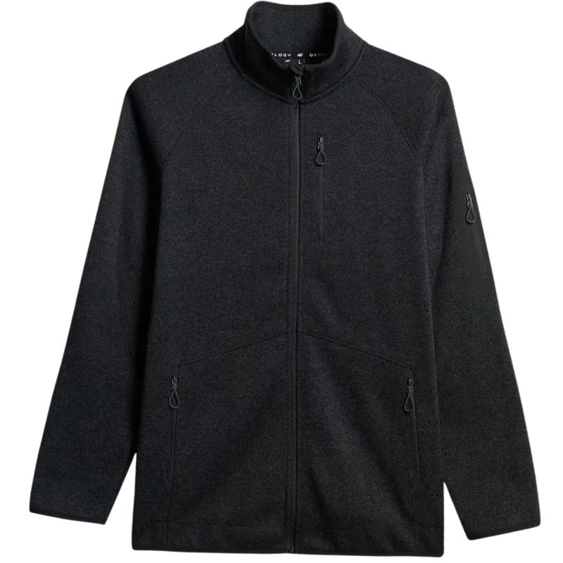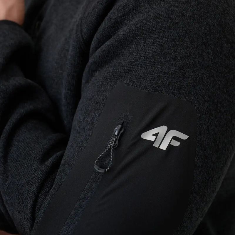 Polar męski 4F M443 głęboka czerń melanż 4FWSS26TFLEM443 20M Polar męski 4F o strukturze imitującej sweter sprawdzi się zarówno na co dzień, jak i podczas aktywności na świeżym powietrzu. Dane techniczne:· Materiał główny: 100% poliester· Materiał dodatkowy: 100% poliester,· Materiał dodatkowy 2: 92% poliester, 8% elastan· Materiał dodatkowy 3: 100% poliester· Regularny krój wygodnie dopasowuje się do sylwetki· Średnia gramatura 280· Standardowy fason sięgający do bioder· Wykonany z polaru o strukturze imitującej sweter · Stójka osłania szyję· Raglanowe rękawy· Mankiety i dół wykończone elastyczną lamówką· 2 kieszenie boczne zapinane na zamek· Kieszeń na ramieniu zapinana na zamek· Kieszeń na piersi zapinana na zamek· Zapinany na jednokierunkowy zamek główny