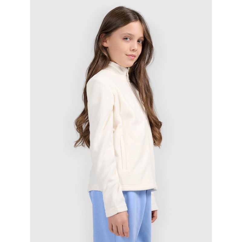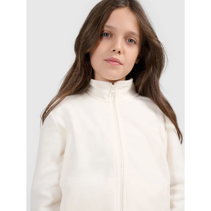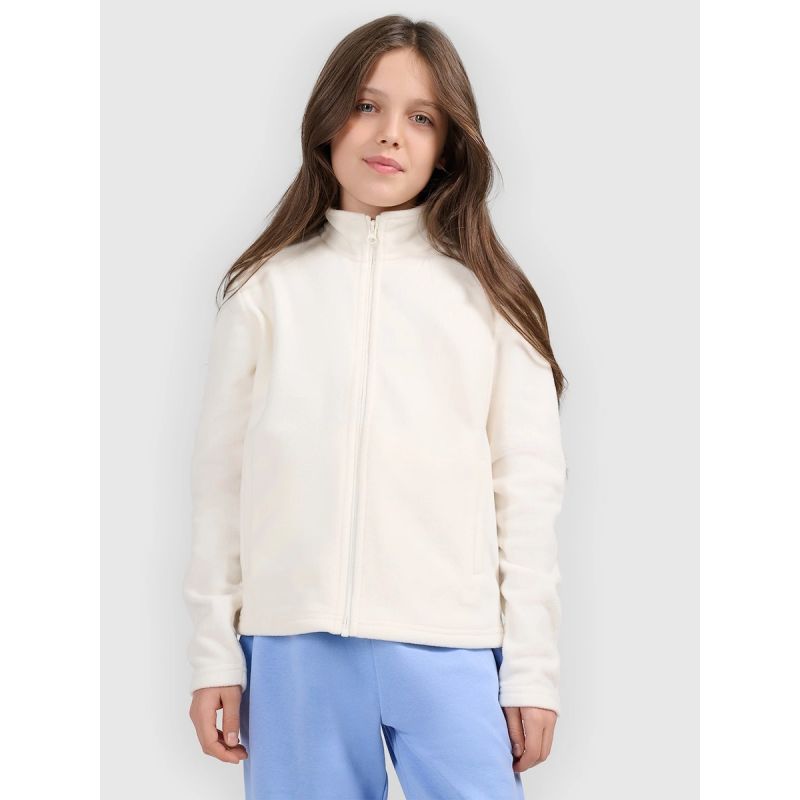 Dziewczęcy polar 4F posiada wygodne zapięcie na zamek, które ułatwia zakładanie i zdejmowanie. Sportowy charakter oraz prosty fason sprawiają, że model dobrze komponuje się z różnymi elementami garderoby i stanowi praktyczne uzupełnienie codziennych stylizacji.