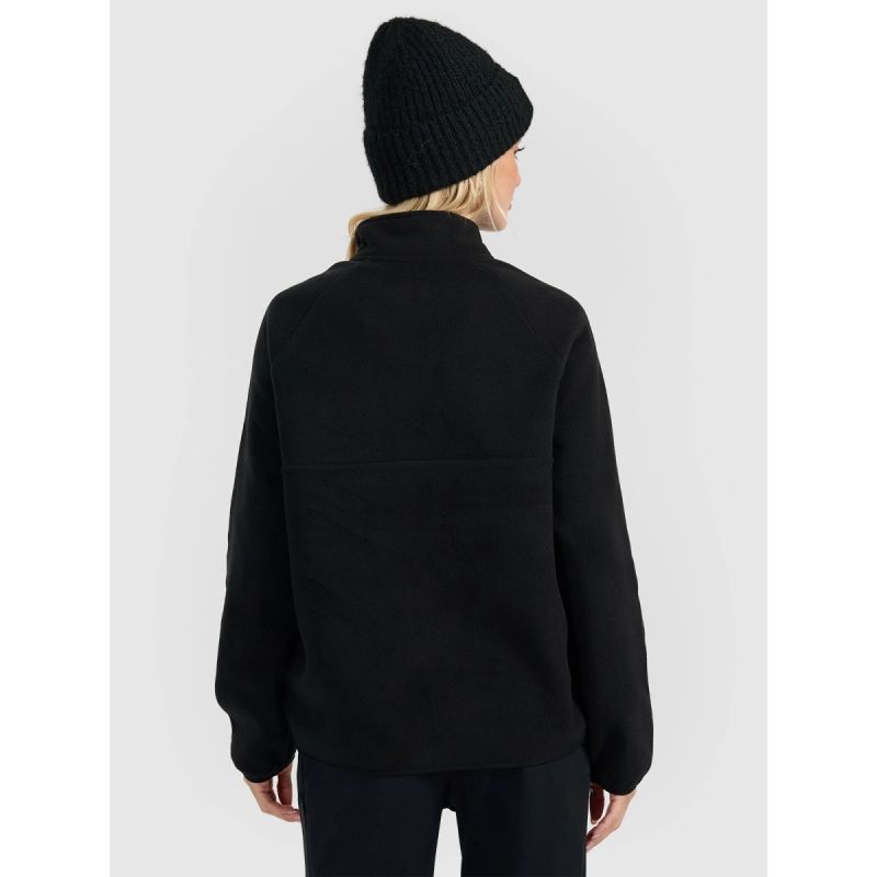 Damski polar rozpinany z technologią 4FWarm to lekka i wygodna warstwa, która zapewnia przyjemne ciepło w chłodniejsze dni bez ryzyka przegrzewania. Miękki, średniej grubości materiał delikatnie otula ciało, sprawdzając się zarówno na co dzień, jak i podczas spacerów czy aktywności outdoorowych. Swobodny krój oversize gwarantuje pełen komfort ruchów, a stójka pod szyją skutecznie chroni przed chłodem i wiatrem.