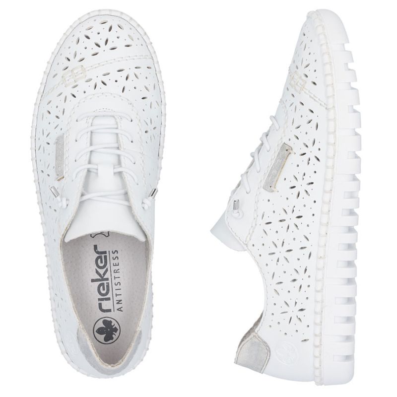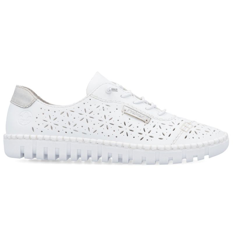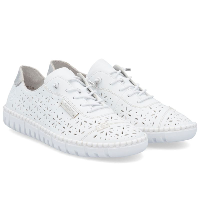 Półbuty damskie ażurowe białe Rieker M2354-80