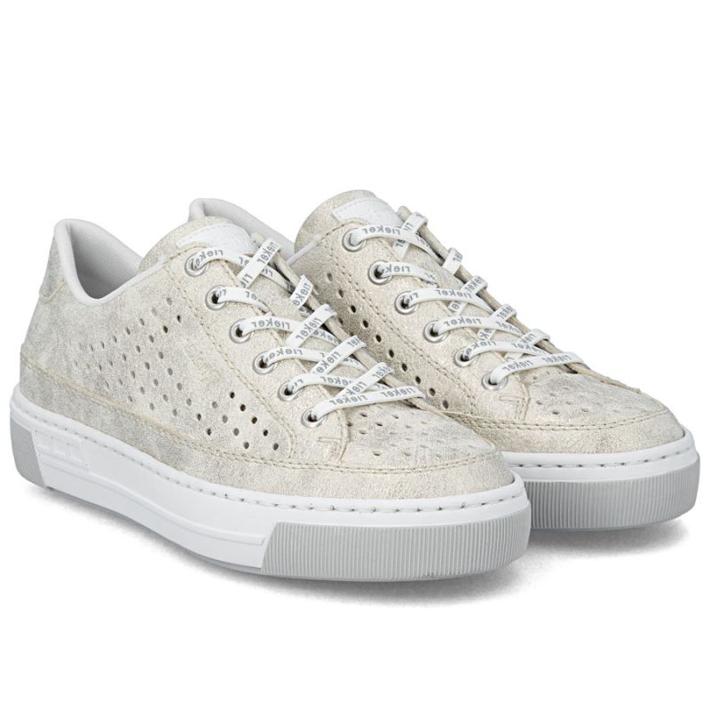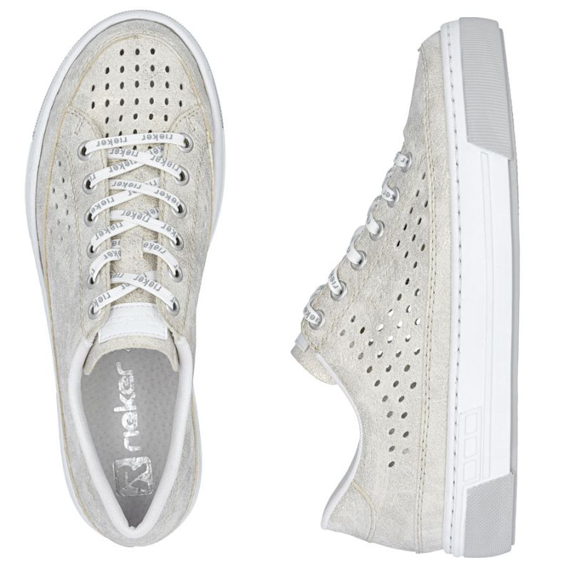 Półbuty damskie ażurowe komfortowe miękkie beżowe Rieker L8849-60