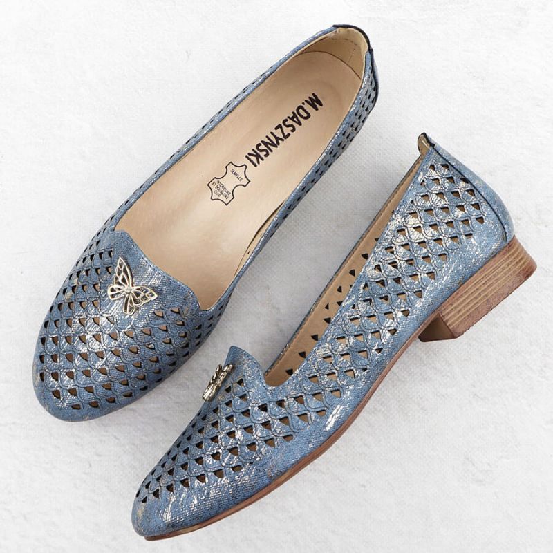 Półbuty damskie ażurowe na niskim obcasie niebieskie M.Daszyński SA222-3