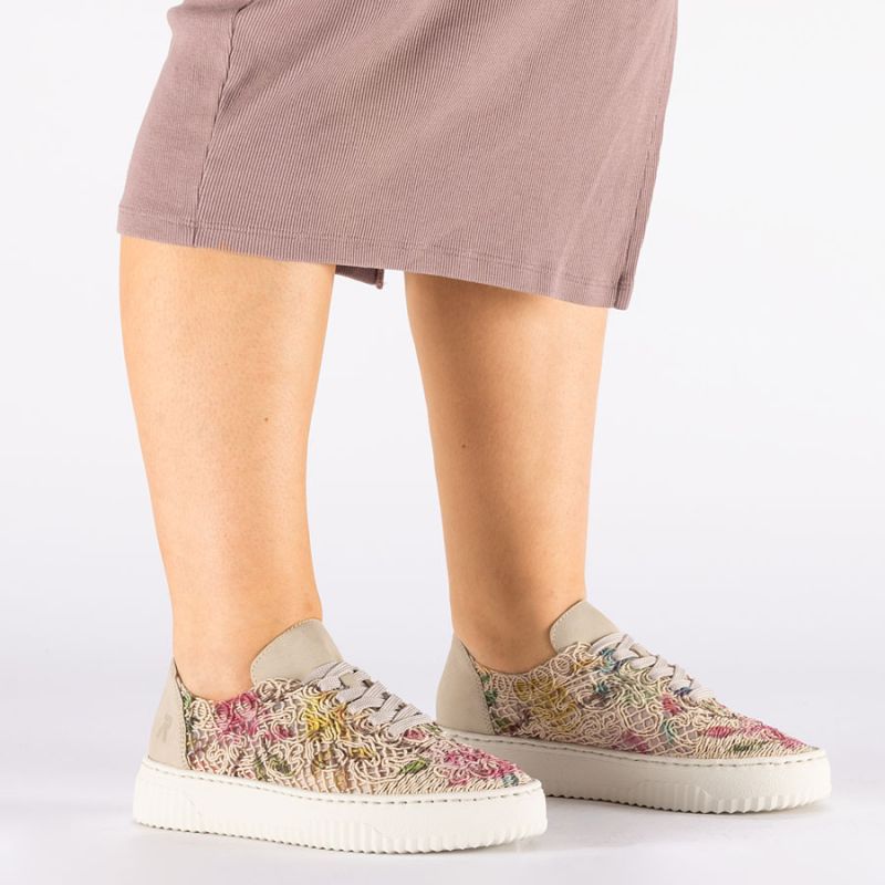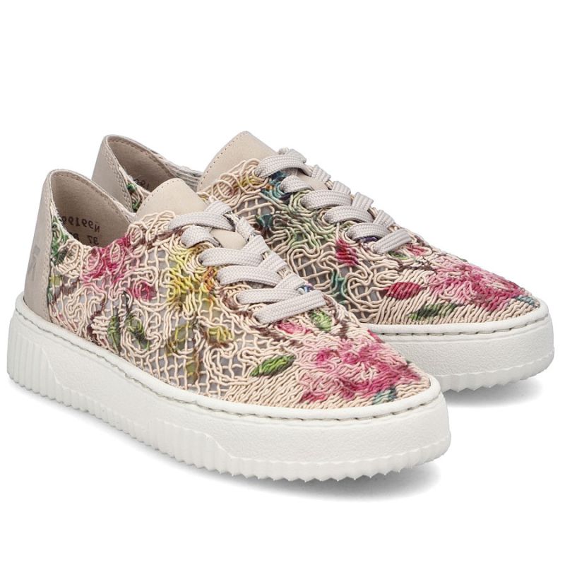 Półbuty damskie ażurowe w kwiaty beżowe Rieker N9919-91