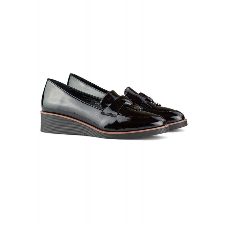 Półbuty damskie lakierowane na koturnie czarne 24-58266B