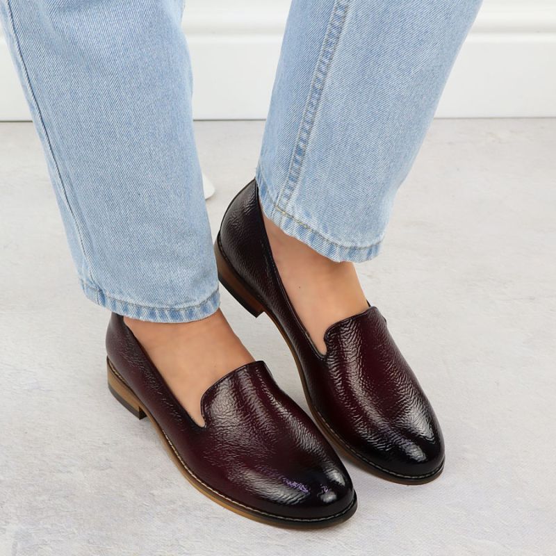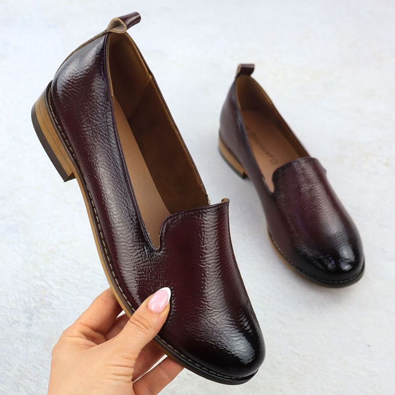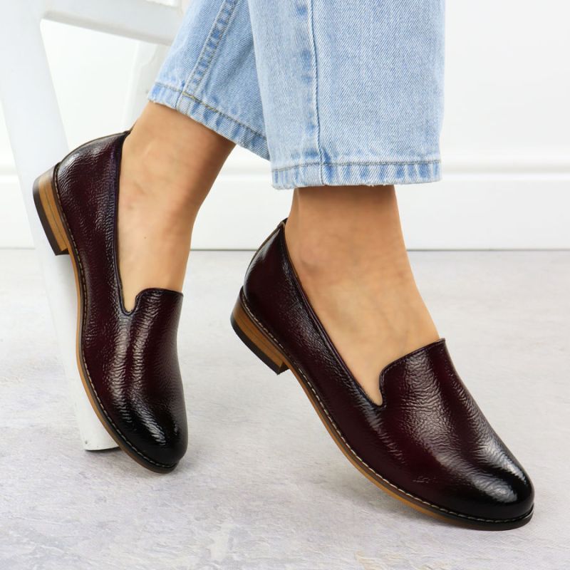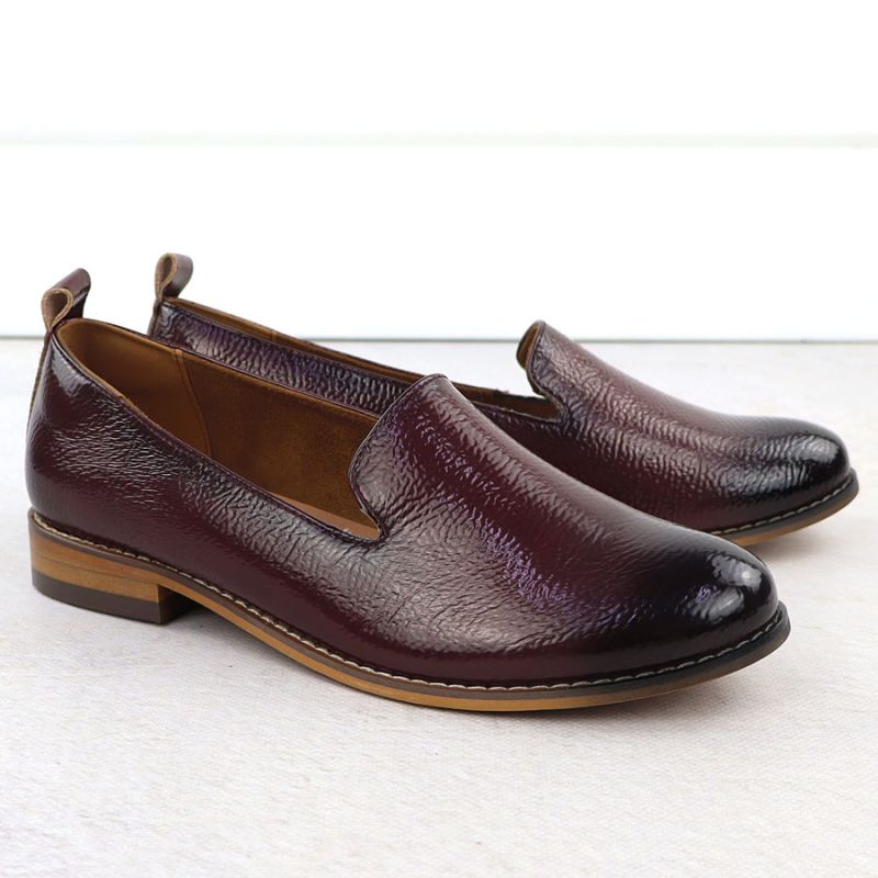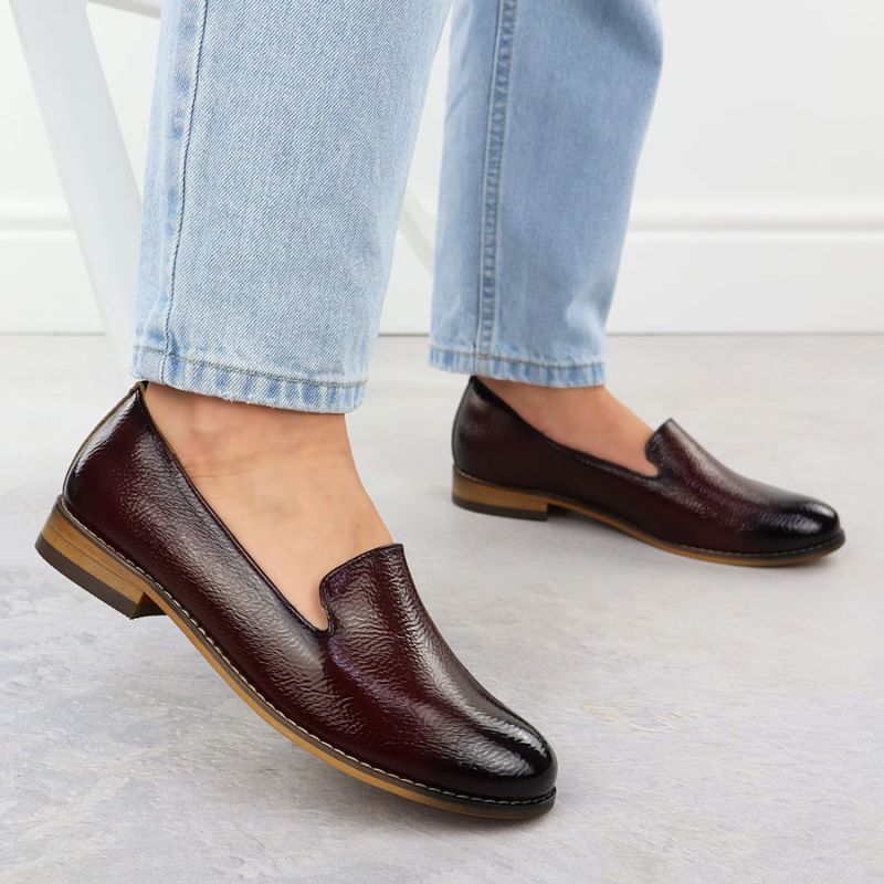2. Półbuty damskie lordsy lakierowane bordowe Potocki 19337