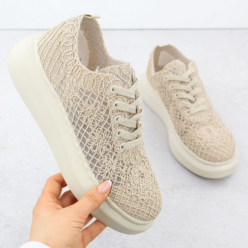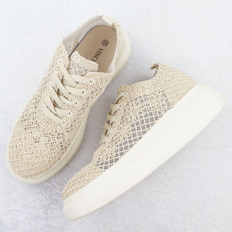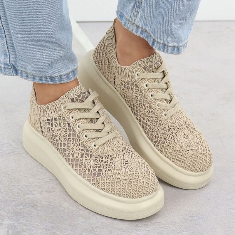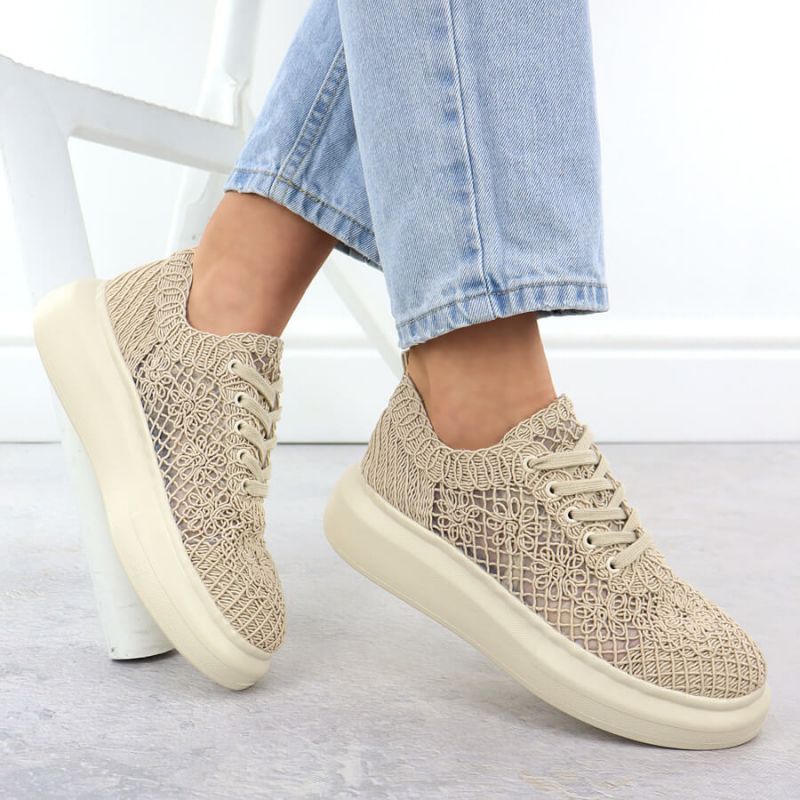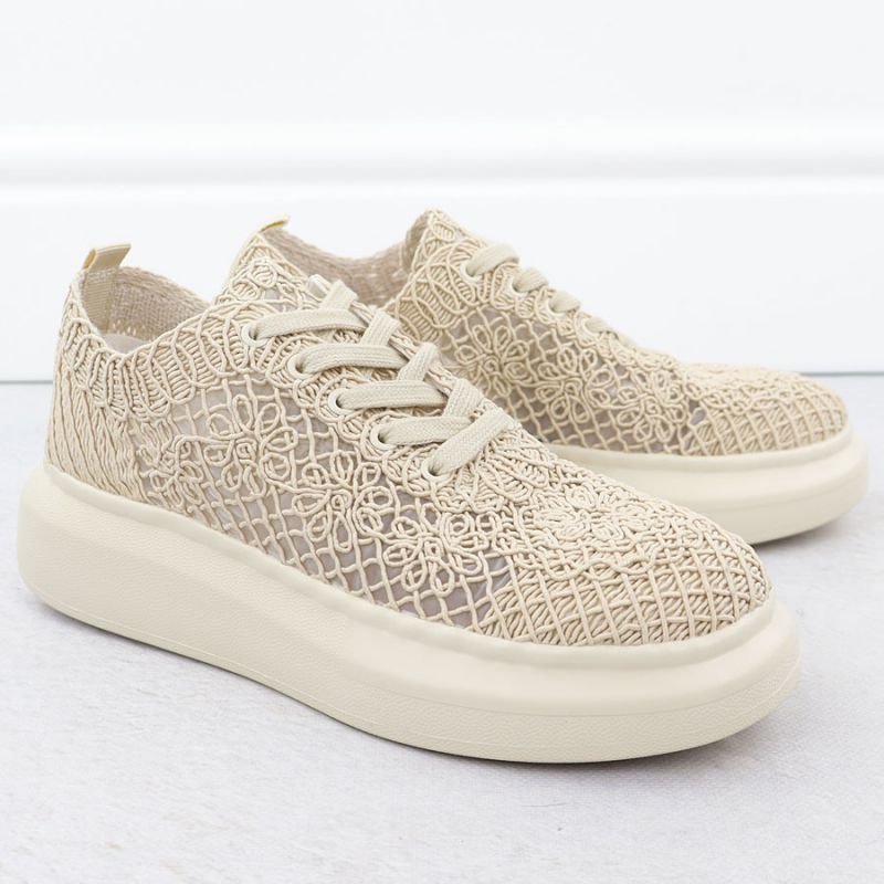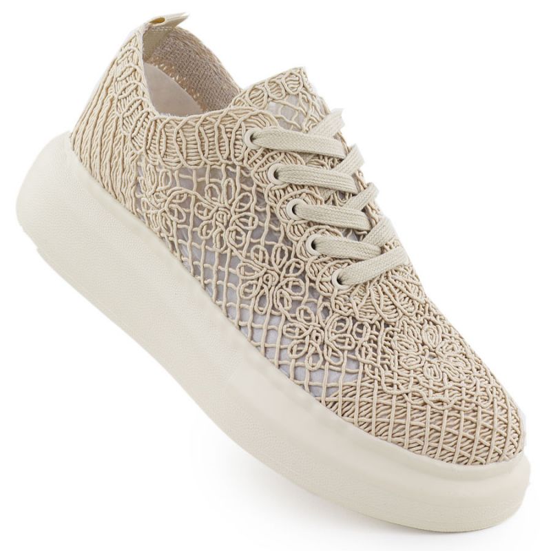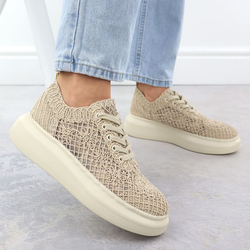 Półbuty damskie na platformie koronkowe beżowe Vinceza 17371