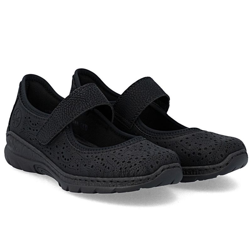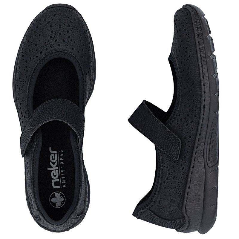 Półbuty damskie na rzep czarne Rieker N4299-00