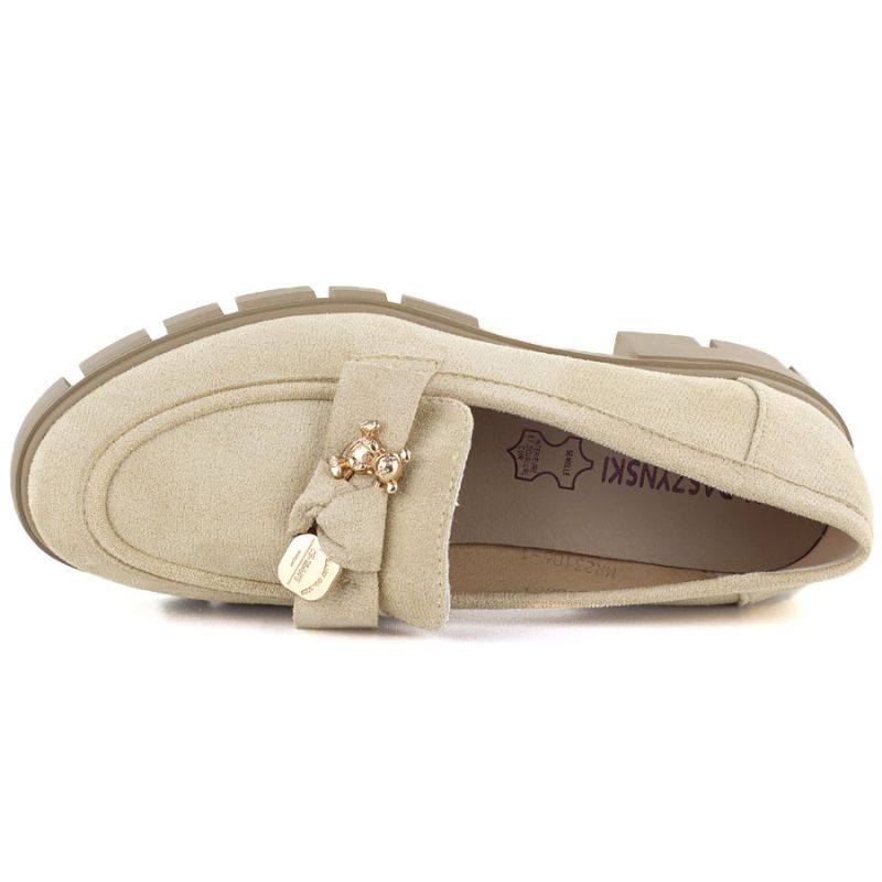 Półbuty damskie zamszowe z ozdobą beżowe M.Daszyński MR23106