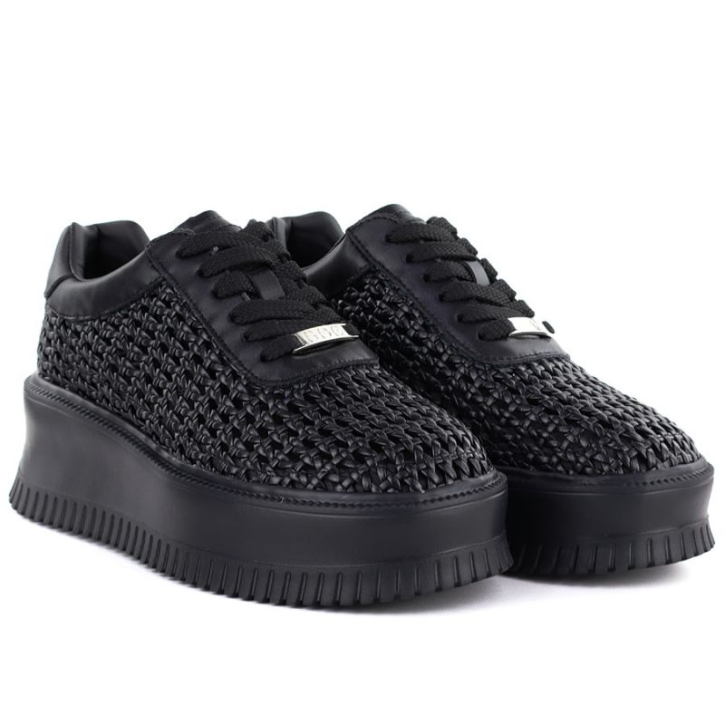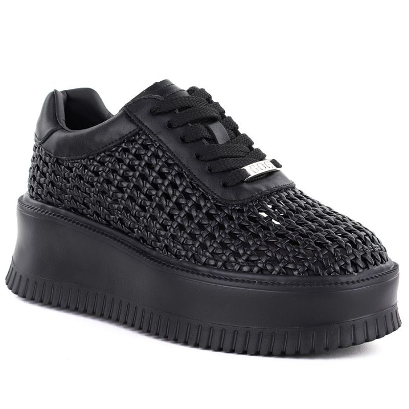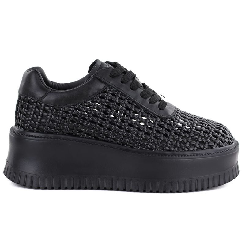 Półbuty sneakersy damskie na platformie ażurowe czarne Goe TT2N4043