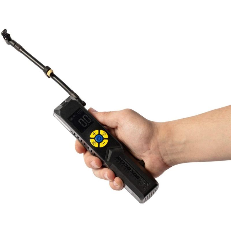 Lekka i zgrabna konstrukcja minikompresora pozwala na schowanie go do torby czy plecaka, a niewielkie wymiary nie przeszkadzają w uzyskaniu wysokiej wydajności i ciśnienia nawet do 150 PSI (ok. 10,2 BAR) bez zewnętrznego źródła zasilania.