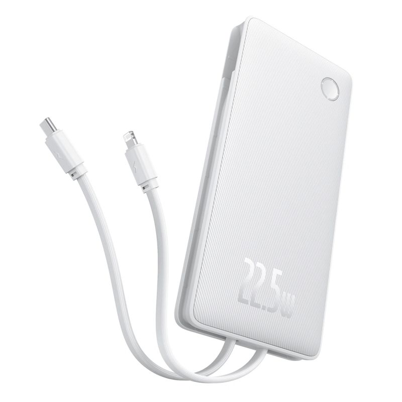 Powerbank Baseus Airpow Lite 10000 mAh 22,5 W z wbudowanymi kablami USB-C i Lightning - biały