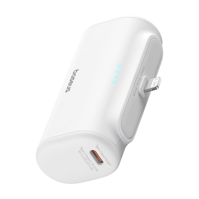 Powerbank Baseus Compact 5000mAh 20W ze złączem Lightning i gniazdem USB-C - biały