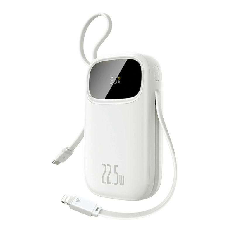 Powerbank Baseus EnerFill FC31 10000mAh 22.5W z wyświetlaczem cyfrowym z 2 wbudowanymi kablami - biały