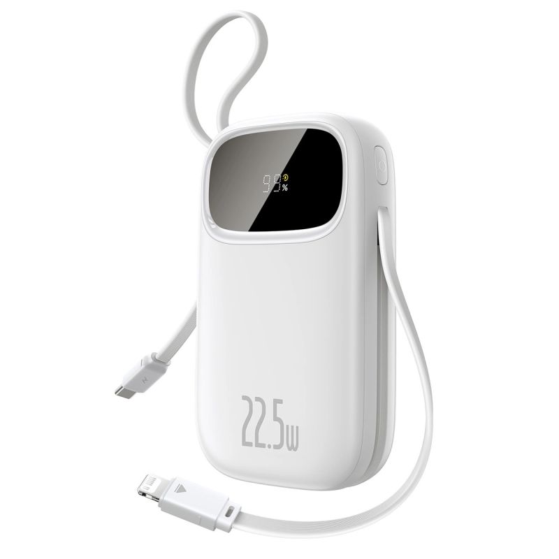 Powerbank Baseus EnerFill FC31 20000mAh 22.5W z wyświetlaczem cyfrowym i 2 wbudowanymi kablami (USB-C + Lightning) - biały